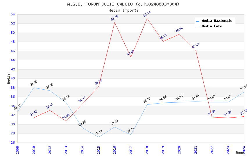 | Anno | Firme | Importi | Media | Naz. | Reg. | Prov. | Comu. |