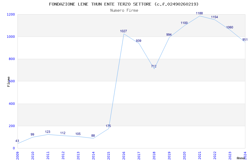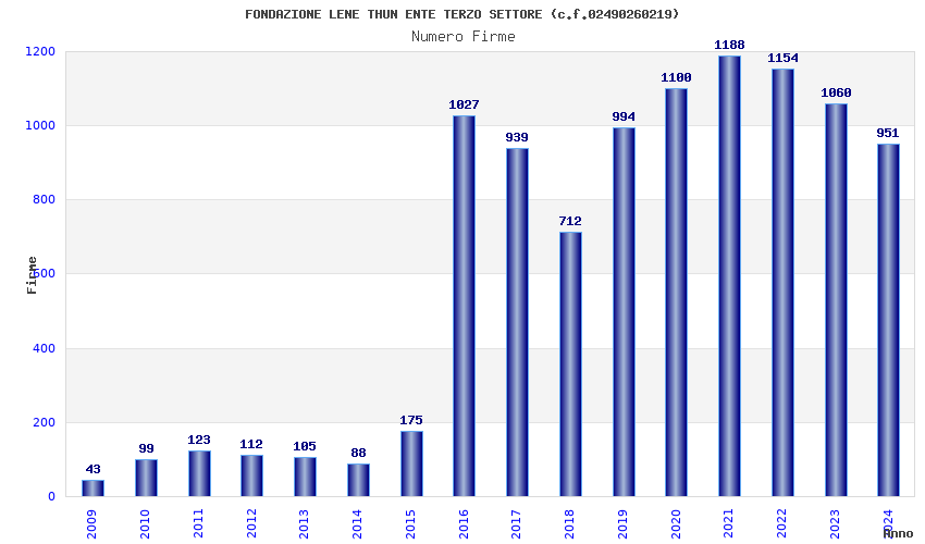 | Anno | Firme | Importi | Media | Naz. | Reg. | Prov. | Comu. |
