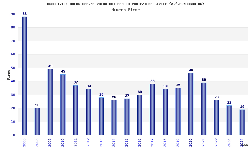 | Anno | Firme | Importi | Media | Naz. | Reg. | Prov. | Comu. |