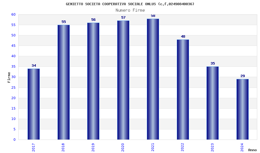 | Anno | Firme | Importi | Media | Naz. | Reg. | Prov. | Comu. |