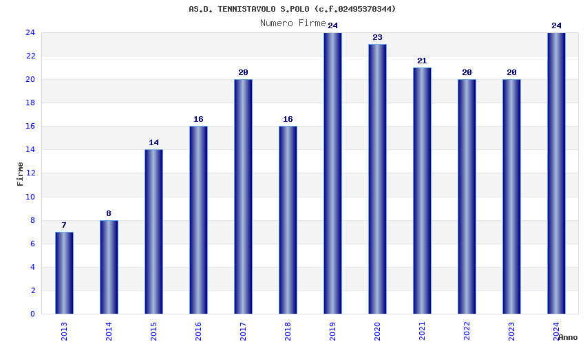 | Anno | Firme | Importi | Media | Naz. | Reg. | Prov. | Comu. |