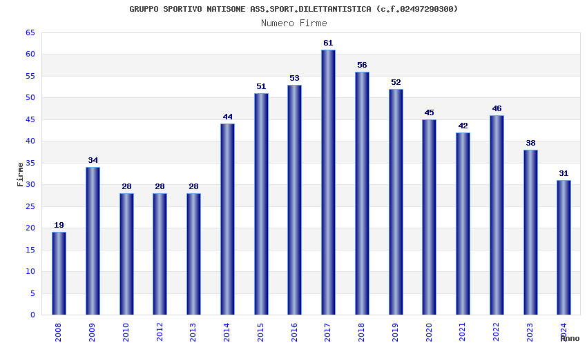 Anno Firme Importi Media Naz. Reg. Prov. Comu.