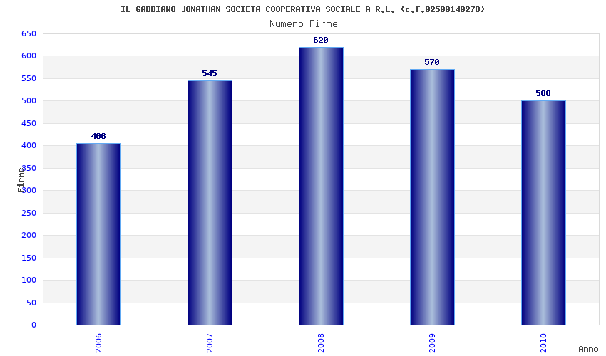 | Anno | Firme | Importi | Media | Naz. | Reg. | Prov. | Comu. |