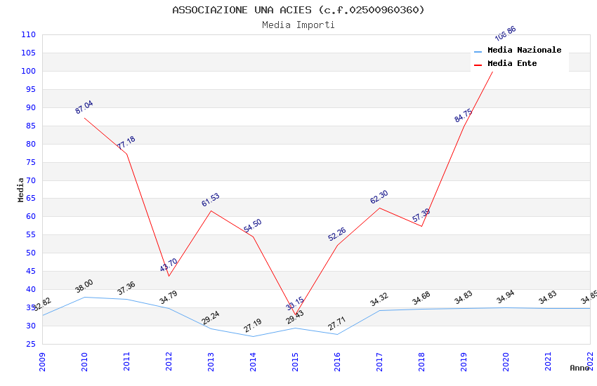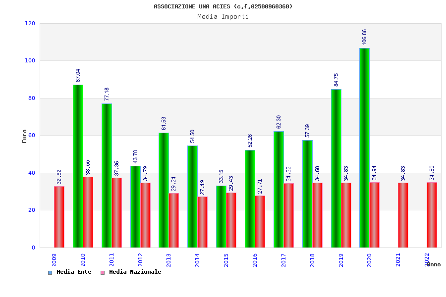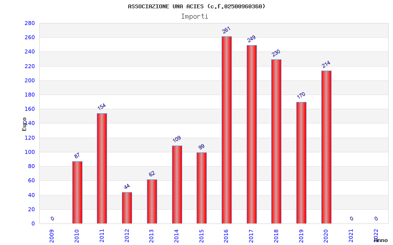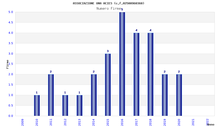 | Anno | Firme | Importi | Media | Naz. | Reg. | Prov. | Comu. |