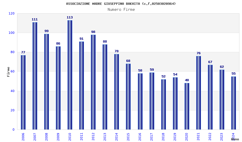 | 2024 | 55 | 2.174,09 | 39,53 | 22.591 | 4.795 | 386 | 5 |