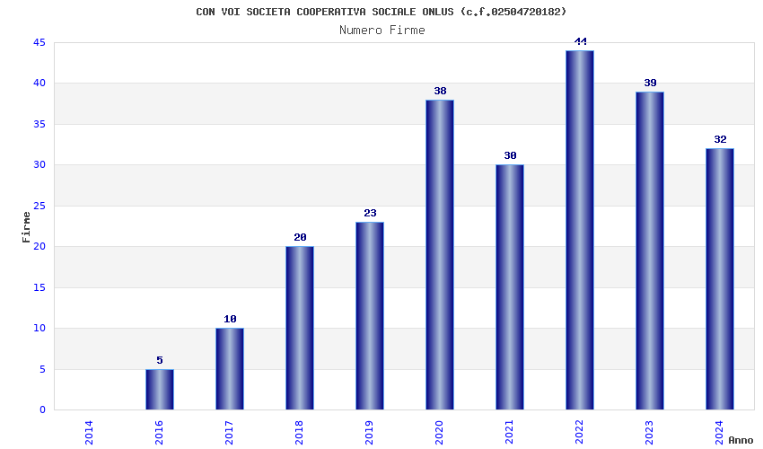 | Anno | Firme | Importi | Media | Naz. | Reg. | Prov. | Comu. |