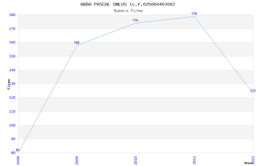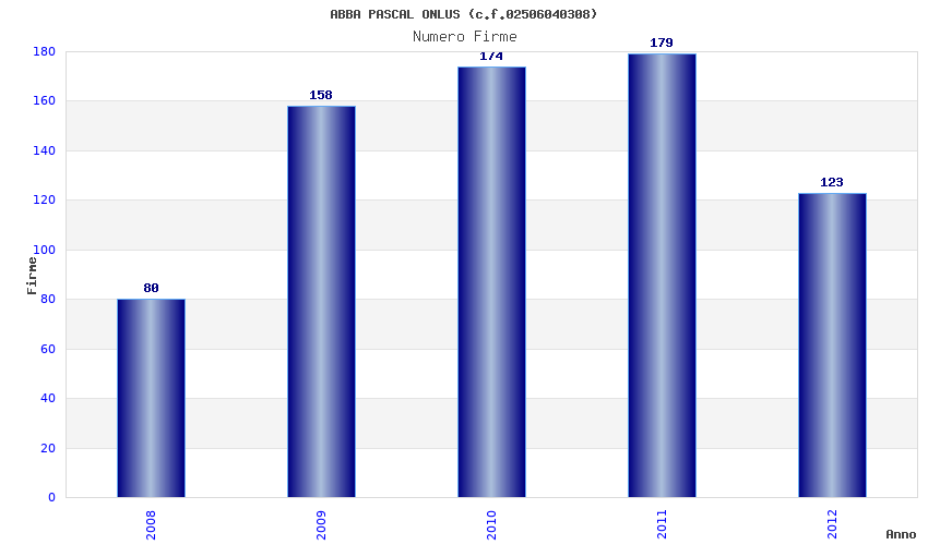 | Anno | Firme | Importi | Media | Naz. | Reg. | Prov. | Comu. |