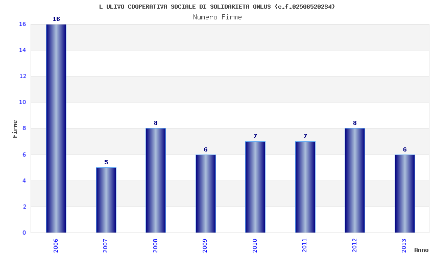 | Anno | Firme | Importi | Media | Naz. | Reg. | Prov. | Comu. |