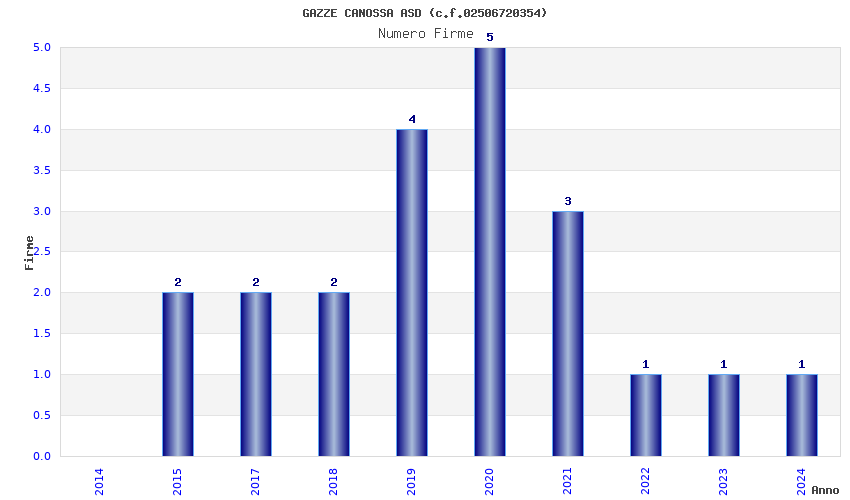 | Anno | Firme | Importi | Media | Naz. | Reg. | Prov. | Comu. |
