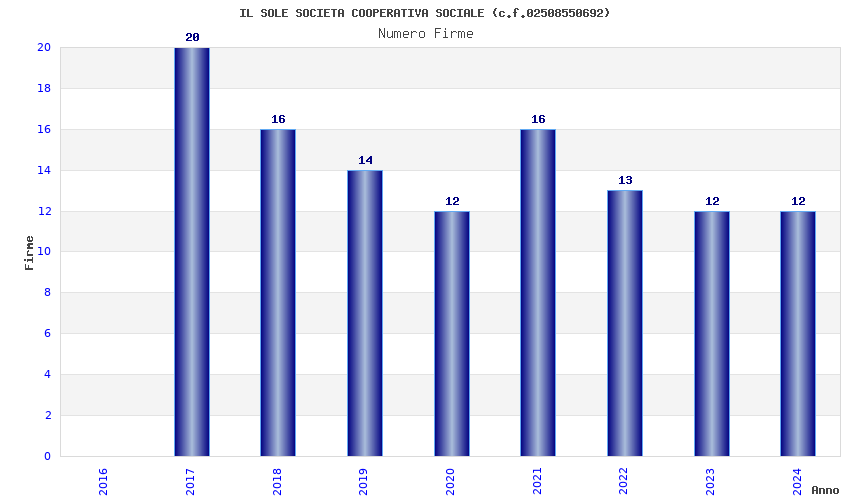 | Anno | Firme | Importi | Media | Naz. | Reg. | Prov. | Comu. |
