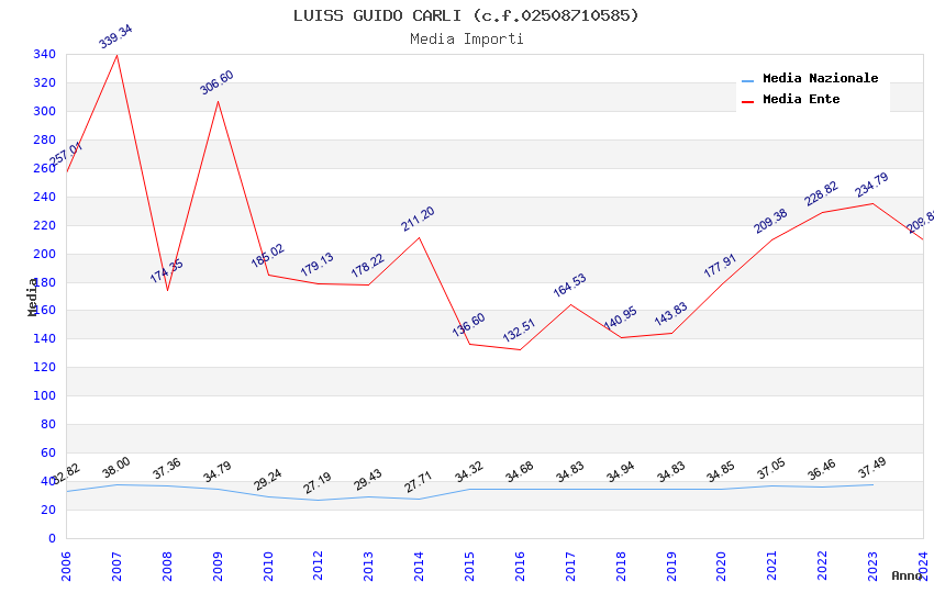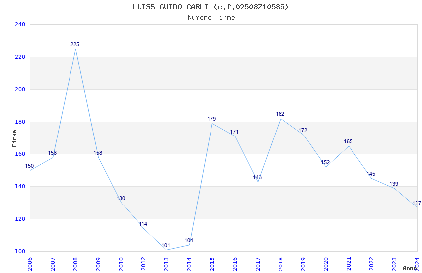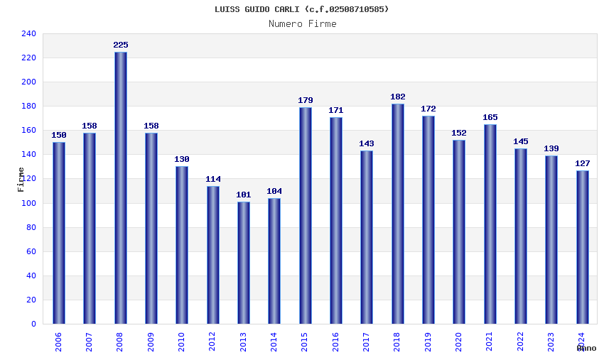 | Anno | Firme | Importi | Media | Naz. | Reg. | Prov. | Comu. |
