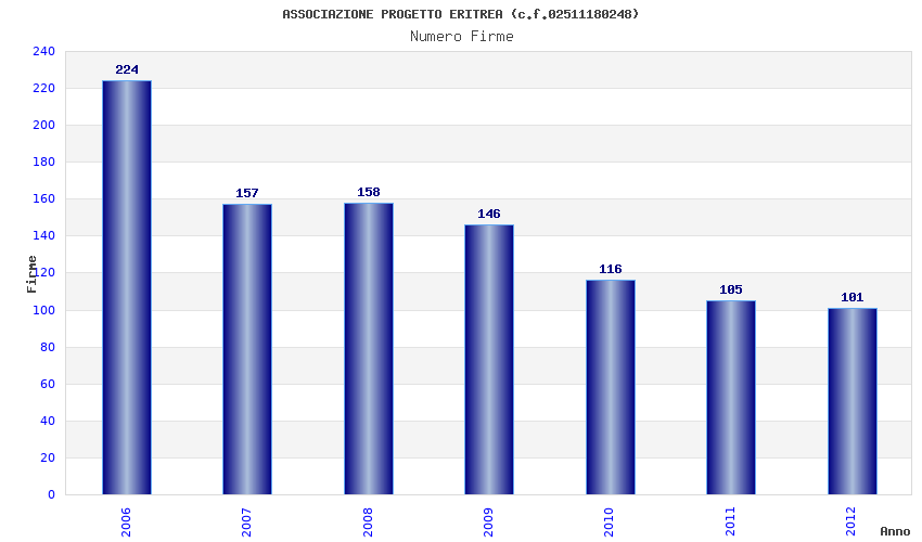 | Anno | Firme | Importi | Media | Naz. | Reg. | Prov. | Comu. |