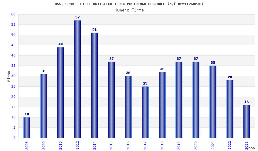 | Anno | Firme | Importi | Media | Naz. | Reg. | Prov. | Comu. |