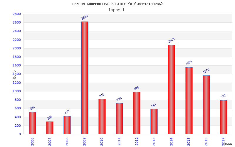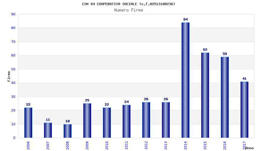| Anno | Firme | Importi | Media | Naz. | Reg. | Prov. | Comu. |