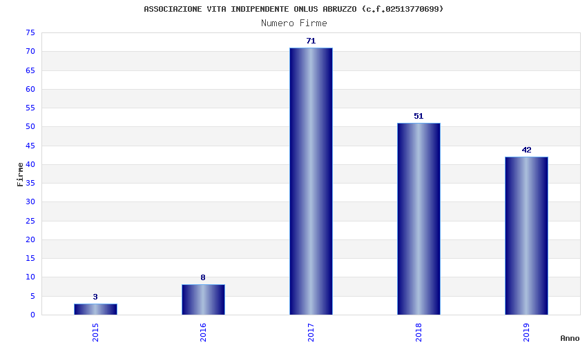 | Anno | Firme | Importi | Media | Naz. | Reg. | Prov. | Comu. |