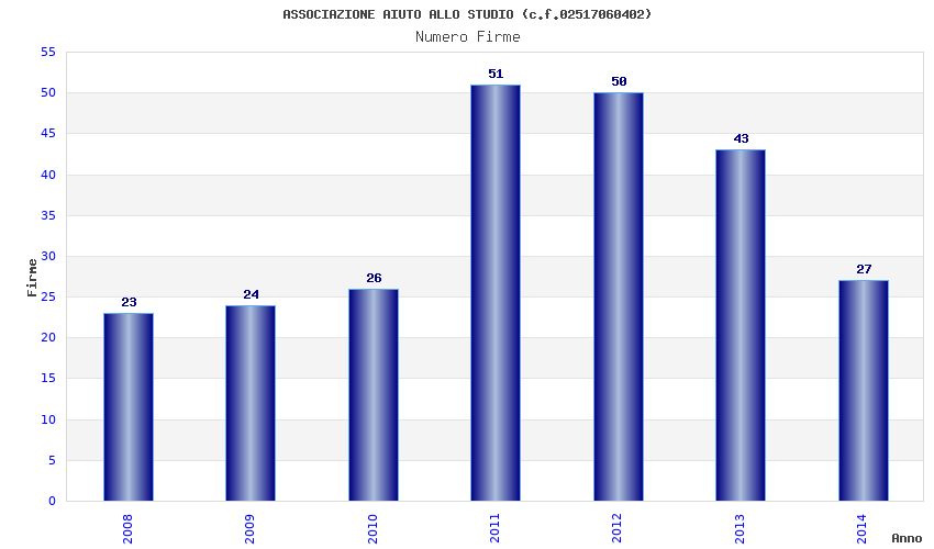 | Anno | Firme | Importi | Media | Naz. | Reg. | Prov. | Comu. |