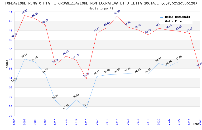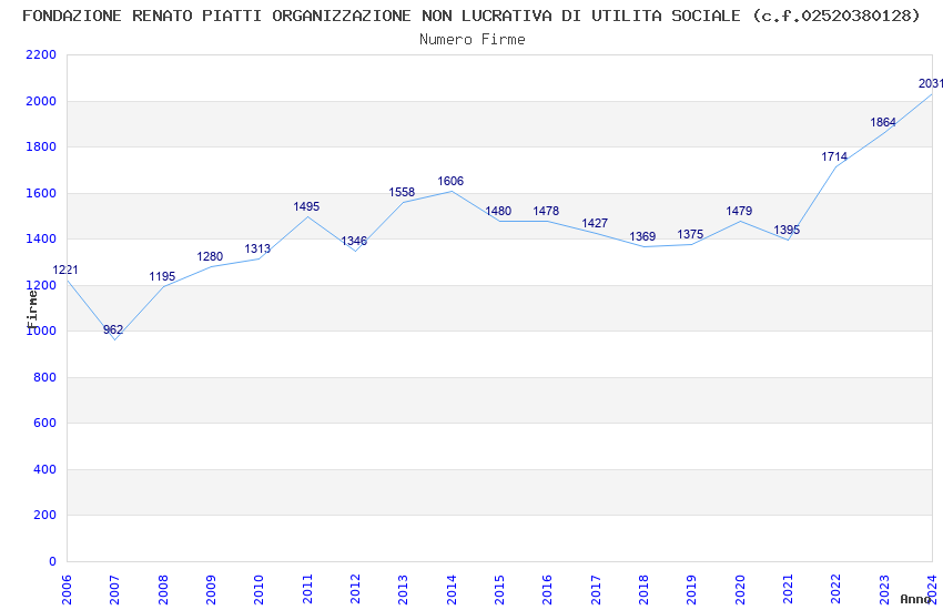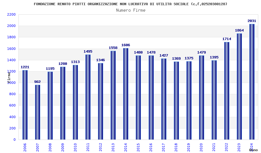 | Anno | Firme | Importi | Media | Naz. | Reg. | Prov. | Comu. |