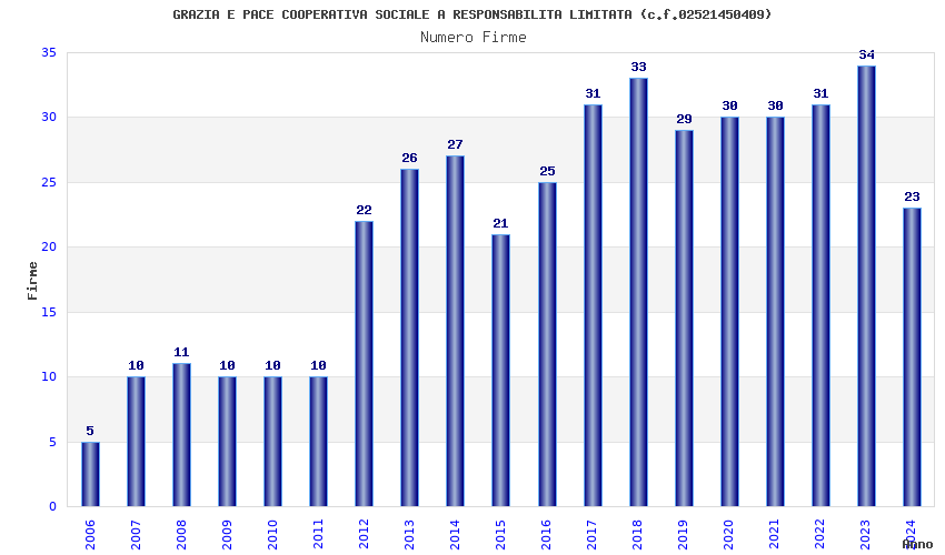 | Anno | Firme | Importi | Media | Naz. | Reg. | Prov. | Comu. |