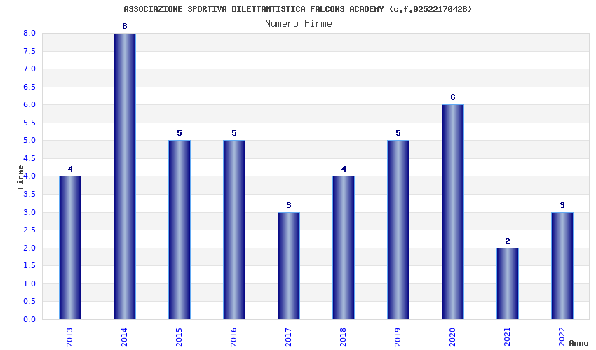 | Anno | Firme | Importi | Media | Naz. | Reg. | Prov. | Comu. |