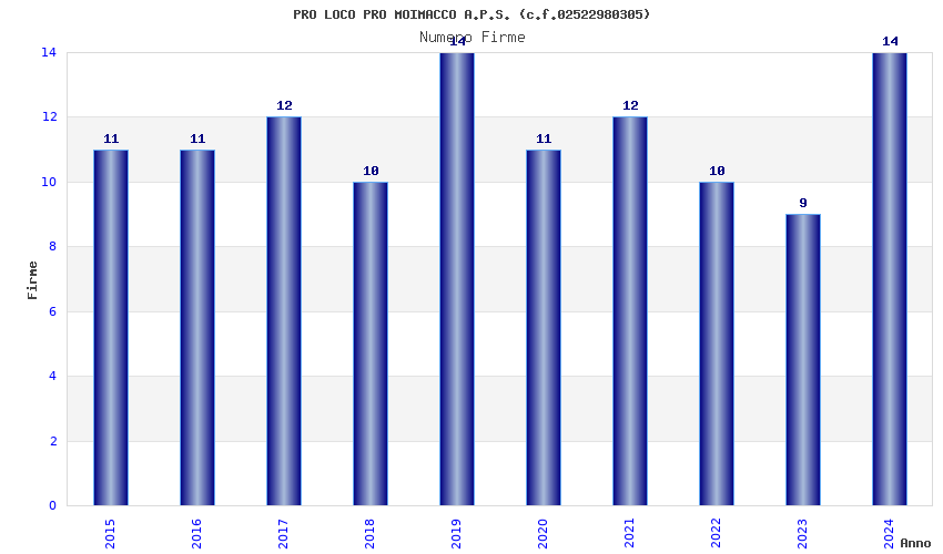 | Anno | Firme | Importi | Media | Naz. | Reg. | Prov. | Comu. |