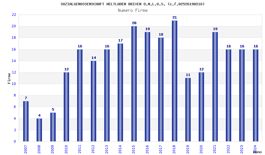 | 2018 | 21 | 823,33 | 39,21 | 37.998 | 1.384 | 712 | 37 |