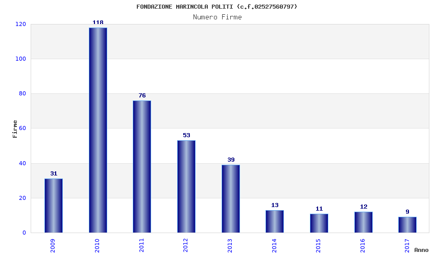 | Anno | Firme | Importi | Media | Naz. | Reg. | Prov. | Comu. |