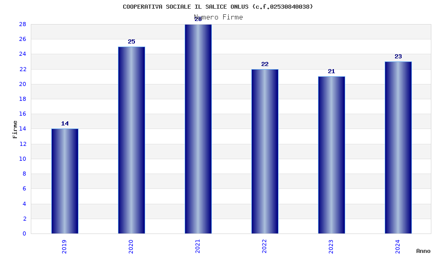 | Anno | Firme | Importi | Media | Naz. | Reg. | Prov. | Comu. |