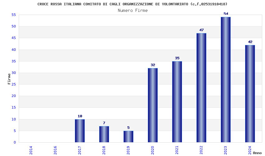 | Anno | Firme | Importi | Media | Naz. | Reg. | Prov. | Comu. |