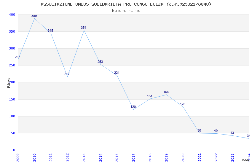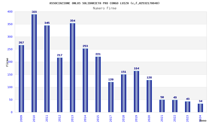 | Anno | Firme | Importi | Media | Naz. | Reg. | Prov. | Comu. |