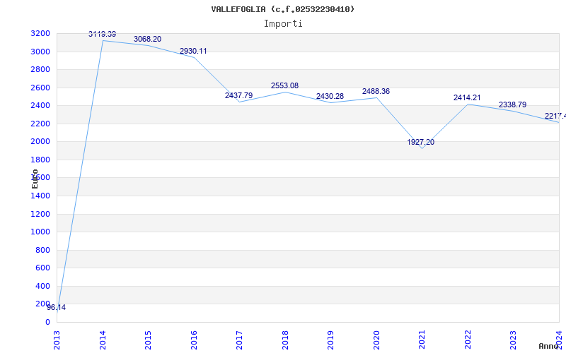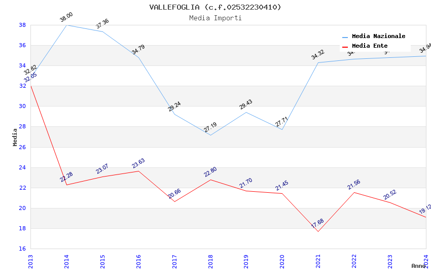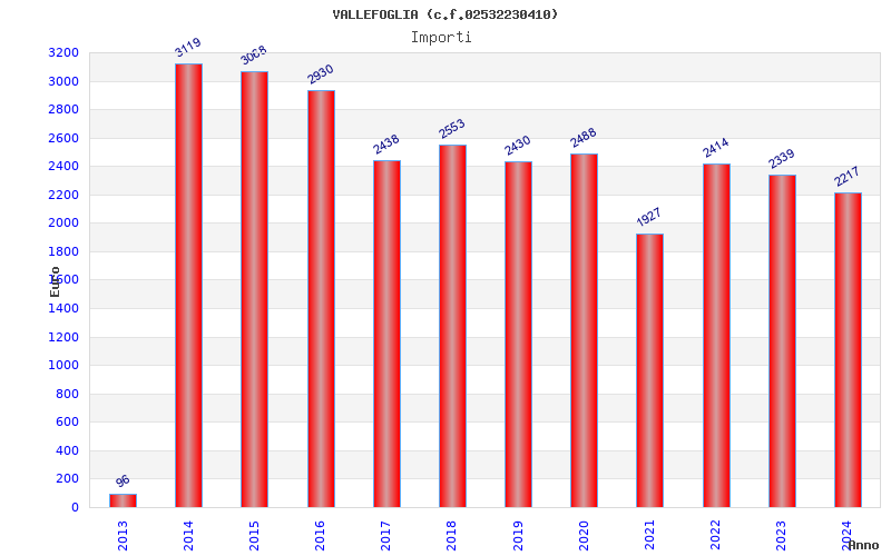 | Anno | Firme | Importi | Media | Naz. | Reg. | Prov. | Comu. |