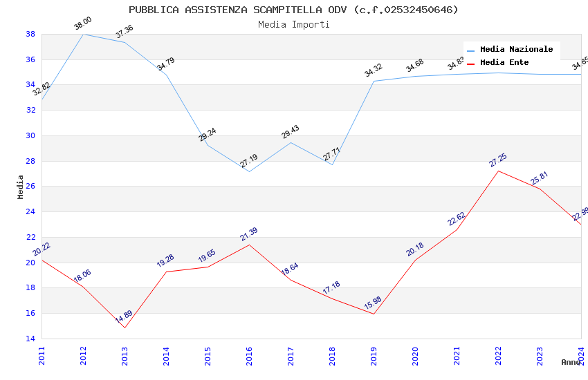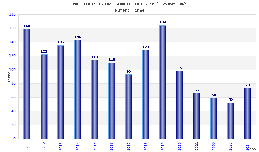 | Anno | Firme | Importi | Media | Naz. | Reg. | Prov. | Comu. |