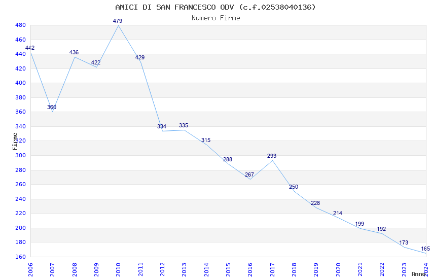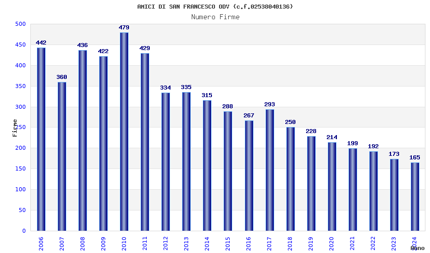 | Anno | Firme | Importi | Media | Naz. | Reg. | Prov. | Comu. |