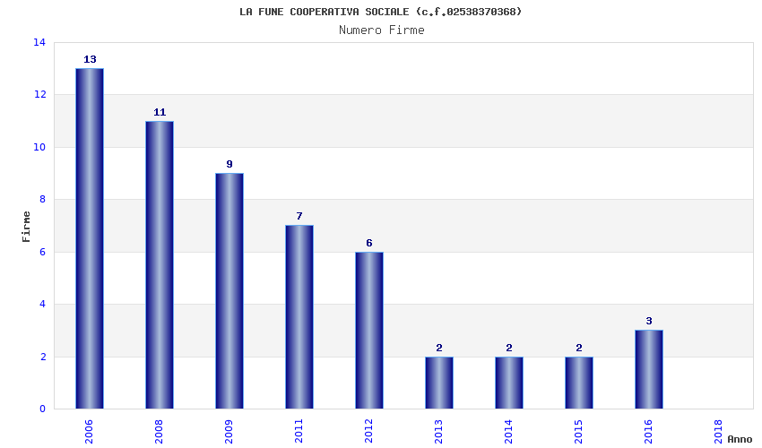 | Anno | Firme | Importi | Media | Naz. | Reg. | Prov. | Comu. |