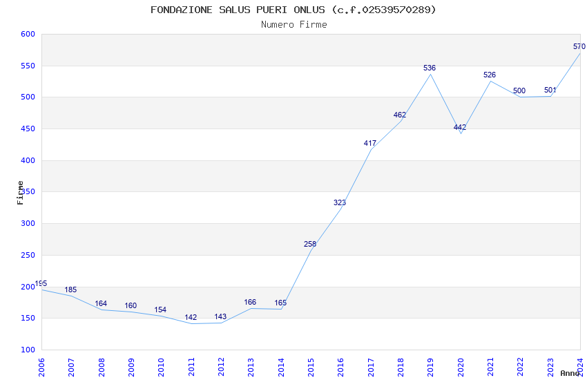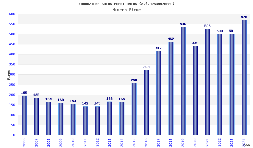 | Anno | Firme | Importi | Media | Naz. | Reg. | Prov. | Comu. |