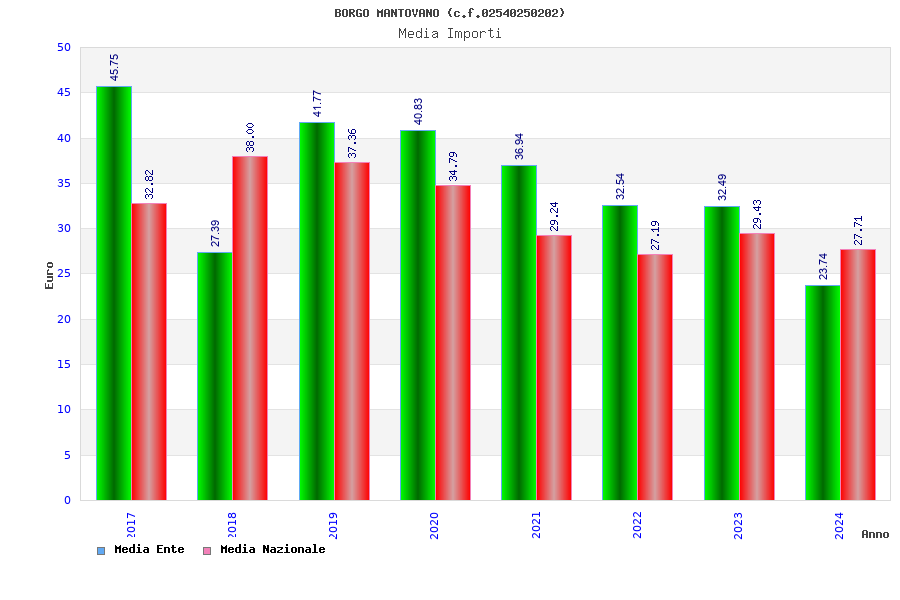 | Anno | Firme | Importi | Media | Naz. | Reg. | Prov. | Comu. |