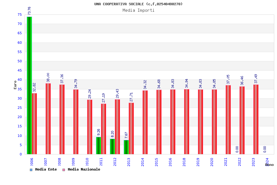 | Anno | Firme | Importi | Media | Naz. | Reg. | Prov. | Comu. |