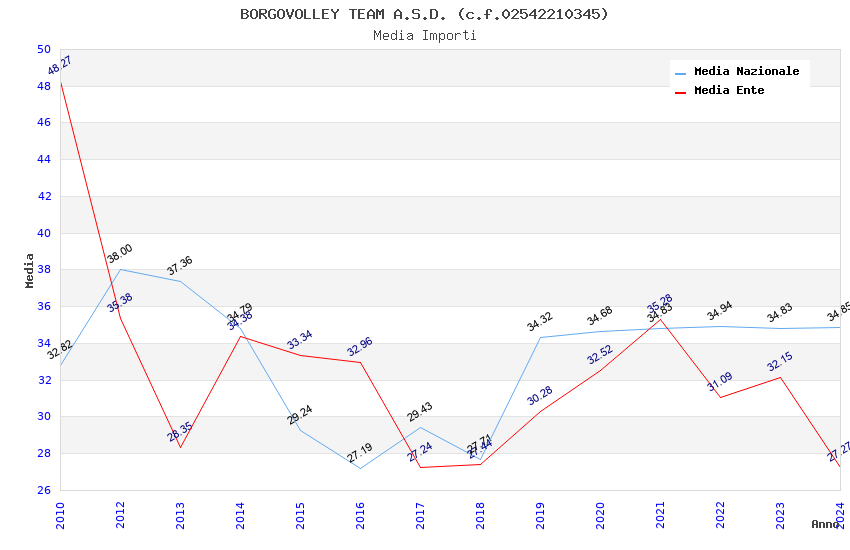 | Anno | Firme | Importi | Media | Naz. | Reg. | Prov. | Comu. |