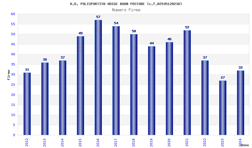 | 2016 | 57 | 1.873,73 | 32,87 | 23.672 | 2.248 | 432 | 13 |