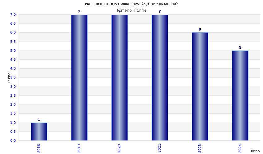 | Anno | Firme | Importi | Media | Naz. | Reg. | Prov. | Comu. |
