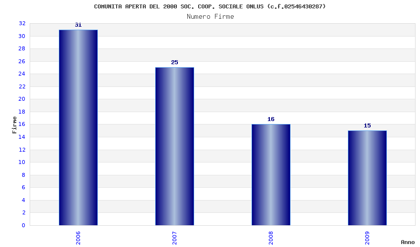 | Anno | Firme | Importi | Media | Naz. | Reg. | Prov. | Comu. |