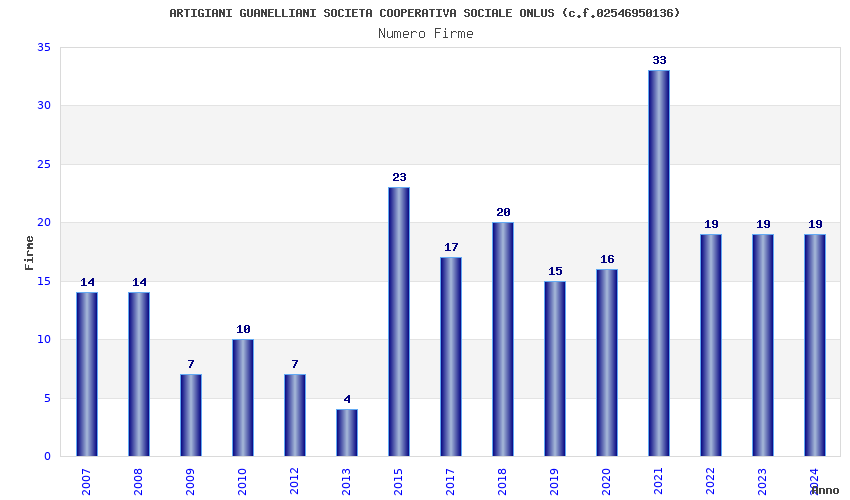 | 2021 | 33 | 617,95 | 18,73 | 44.545 | 8.935 | 526 | 114 |