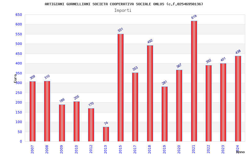 | Anno | Firme | Importi | Media | Naz. | Reg. | Prov. | Comu. |