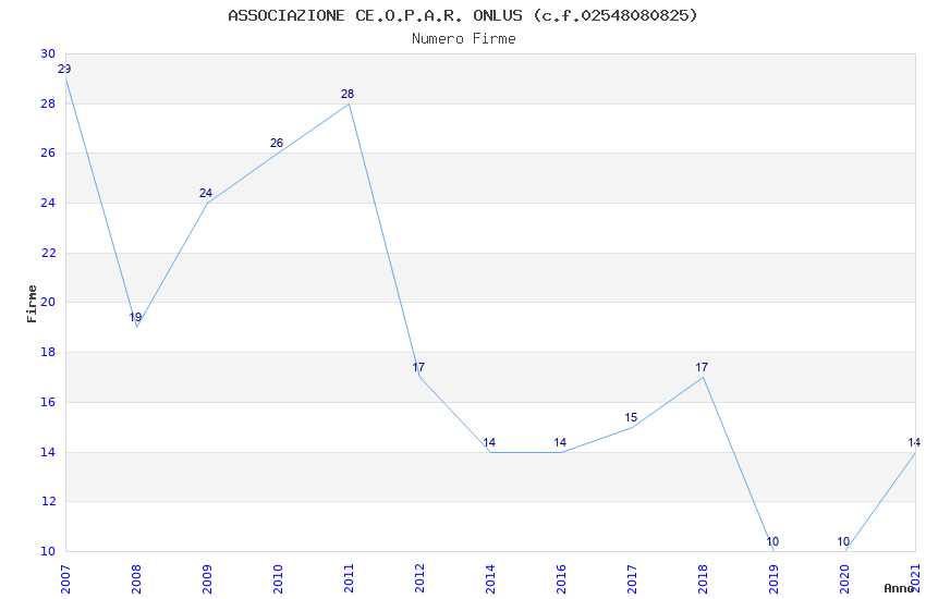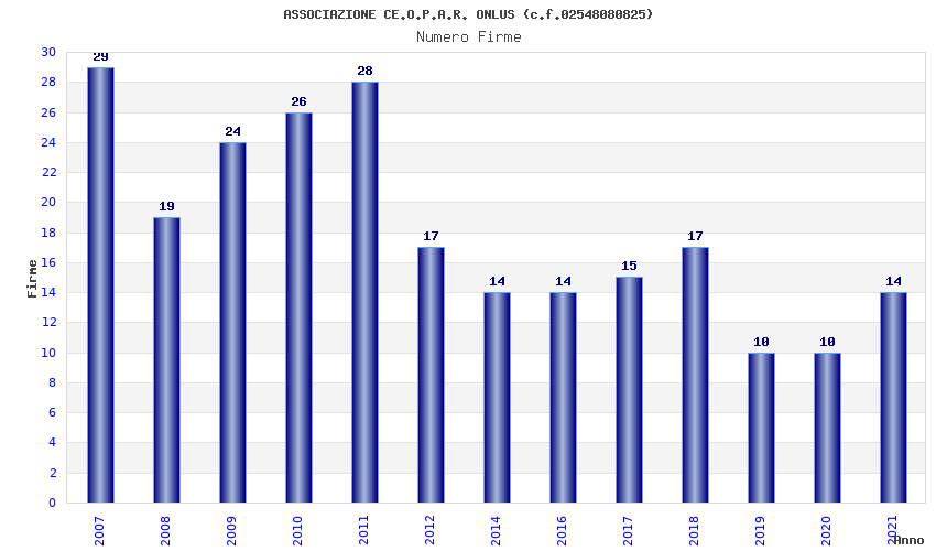 | Anno | Firme | Importi | Media | Naz. | Reg. | Prov. | Comu. |