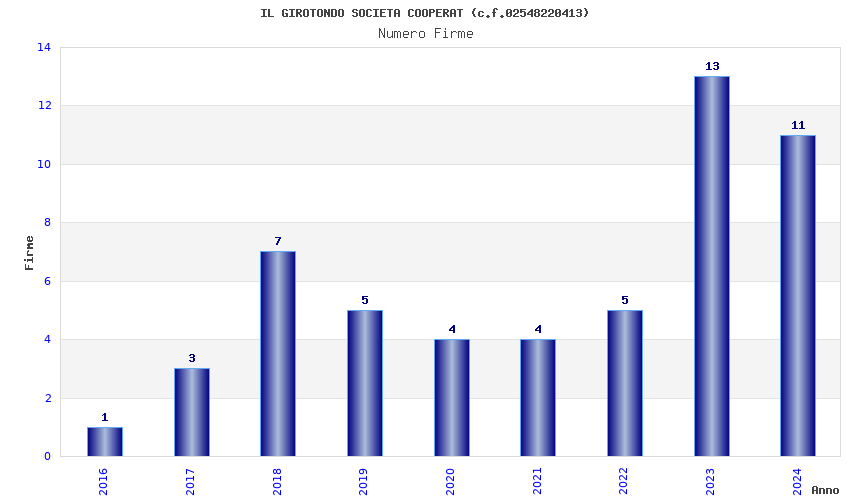 | Anno | Firme | Importi | Media | Naz. | Reg. | Prov. | Comu. |