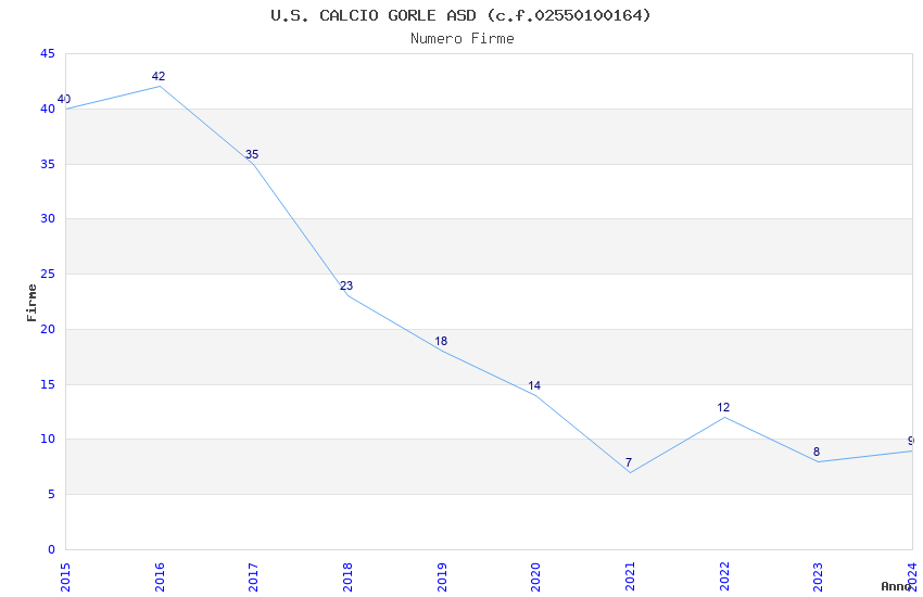 | 2015 | 40 | 1.617,49 | 40,44 | 24.802 | 5.596 | 596 | 5 |