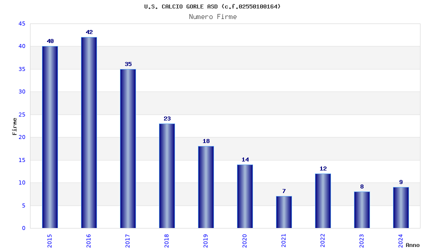 | Anno | Firme | Importi | Media | Naz. | Reg. | Prov. | Comu. |
