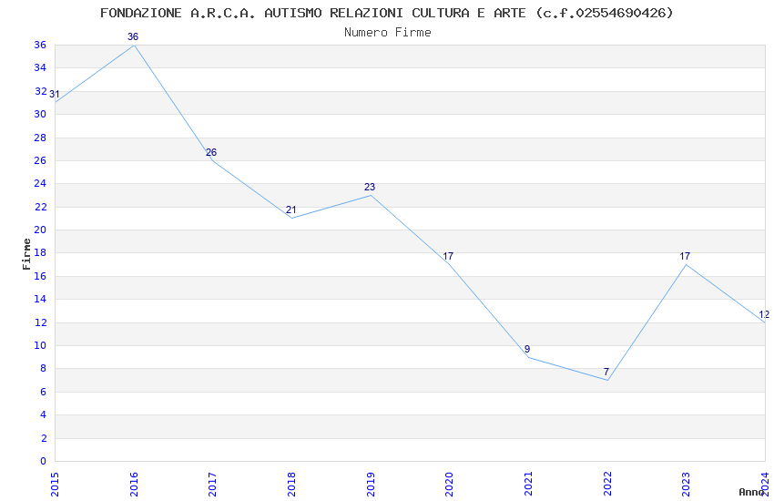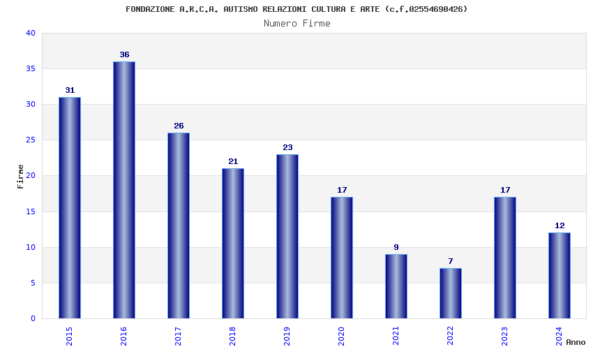 | Anno | Firme | Importi | Media | Naz. | Reg. | Prov. | Comu. |