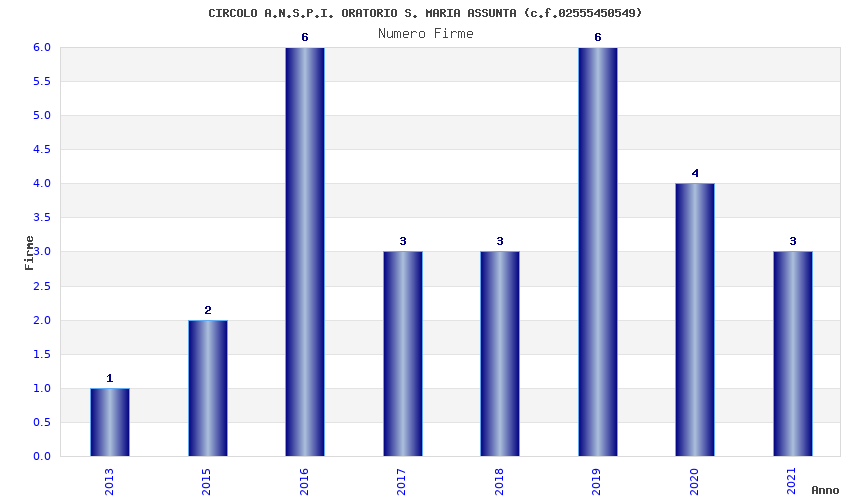 | Anno | Firme | Importi | Media | Naz. | Reg. | Prov. | Comu. |