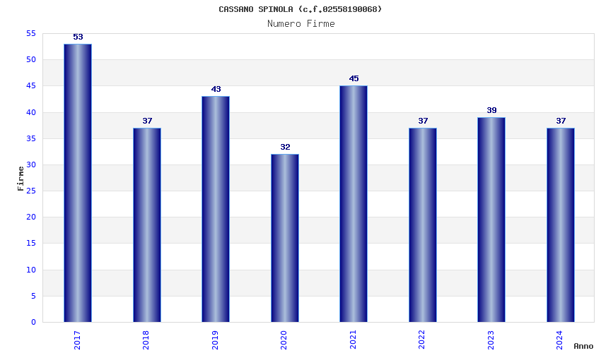 | Anno | Firme | Importi | Media | Naz. | Reg. | Prov. | Comu. |