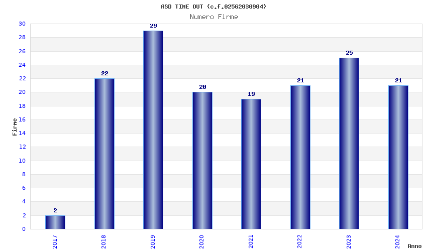 | Anno | Firme | Importi | Media | Naz. | Reg. | Prov. | Comu. |